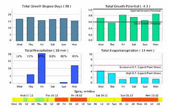 prediction models using Growth-Degree-Days and Growth Potential. This enables end-users to see the pattern of predicted growth over the coming week, allowing them to identify uptake windows for fertilisers, growth regulators and pesticides. It also predicts potential growth flushes and periods of plant stress, facilitating a proactive rather than reactive approach to turf management.
