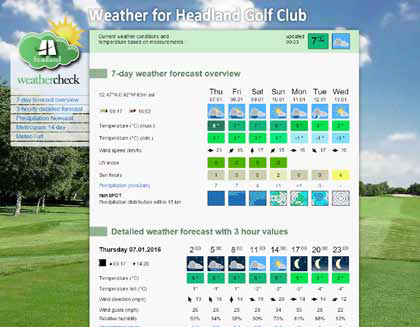 Headland Amenity, working closely with Meteoblue in Switzerland, provide a location specific weather forecasting service for golf clubs, sports grounds and other customers throughout the UK and Ireland. This service is called Headland Weathercheck.